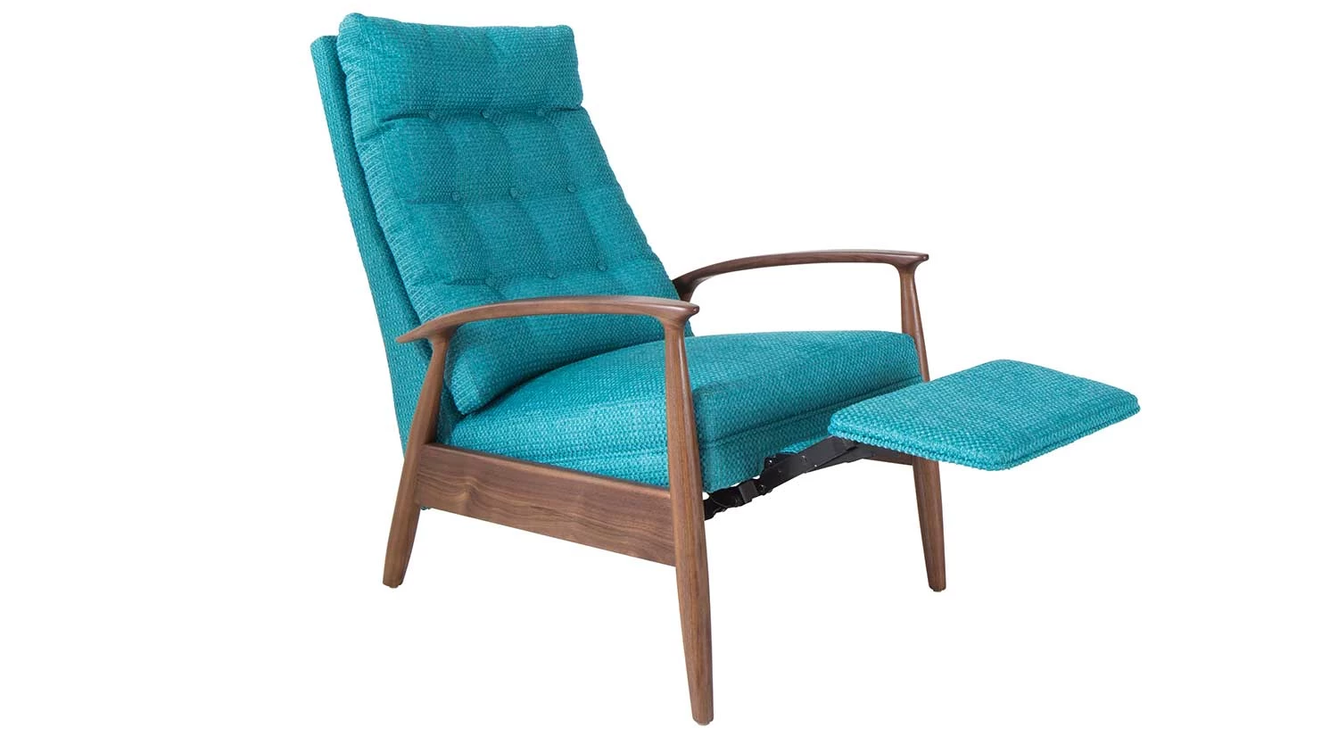 The Viceroy Recliner is a designer’s dream! Designed by Milo Baughman in 1965 this recliner is available in a multitude of beautiful fabrics or leathers. The exposed wood frame is hand crated solid walnut for stunning yet simple elegance.