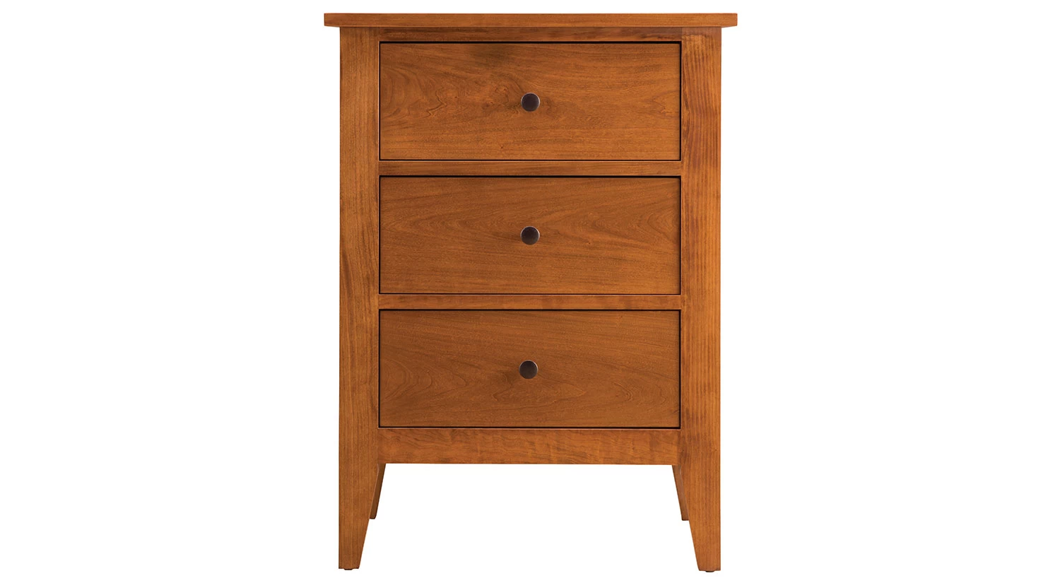 The beautiful and classic Vineyard Three Drawer Nightstand from Gat Creek is handmade in West Virginia. It’s available in many finishes. Made with local and sustainably harvested solid Appalachian hardwood.