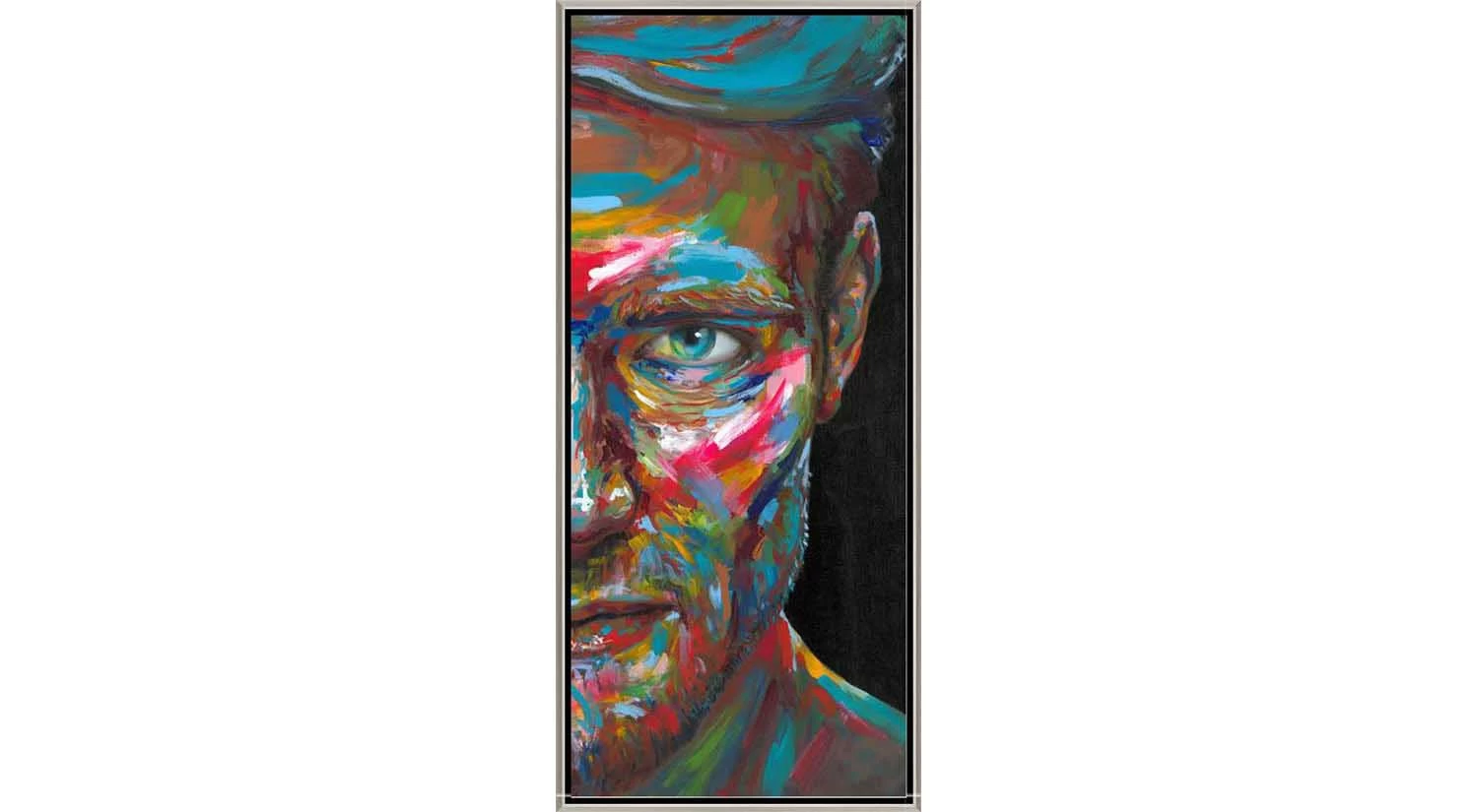 Vivid Detachment ll feels like a photograph due to its realistic details. At the same time, its use of various colors on the subject’s face adds a cartoon-like element to the overall aesthetic.
