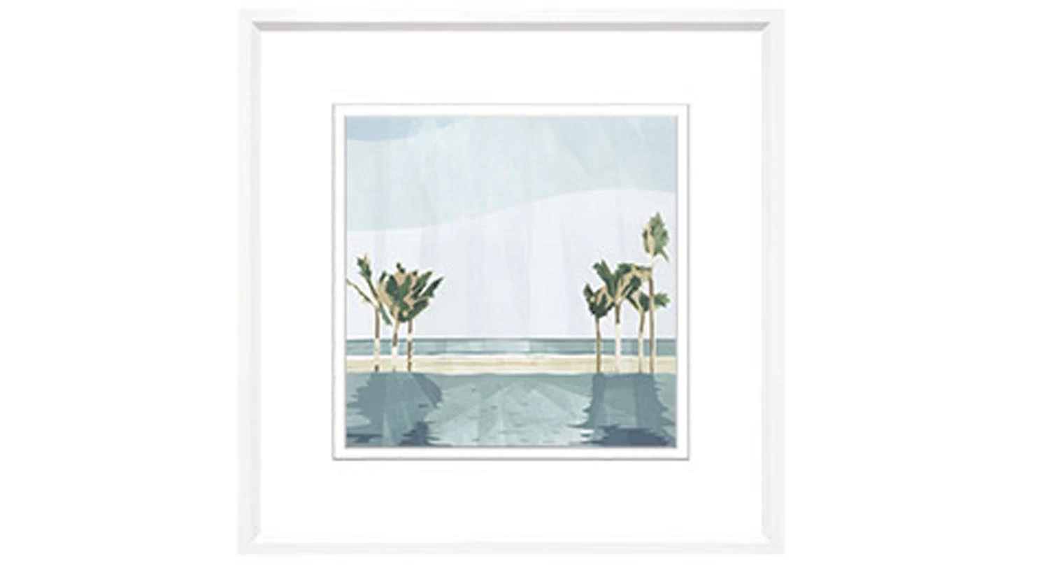 Watercolour Beach VII uses soft coastal hues to depict a serene tropical view.
