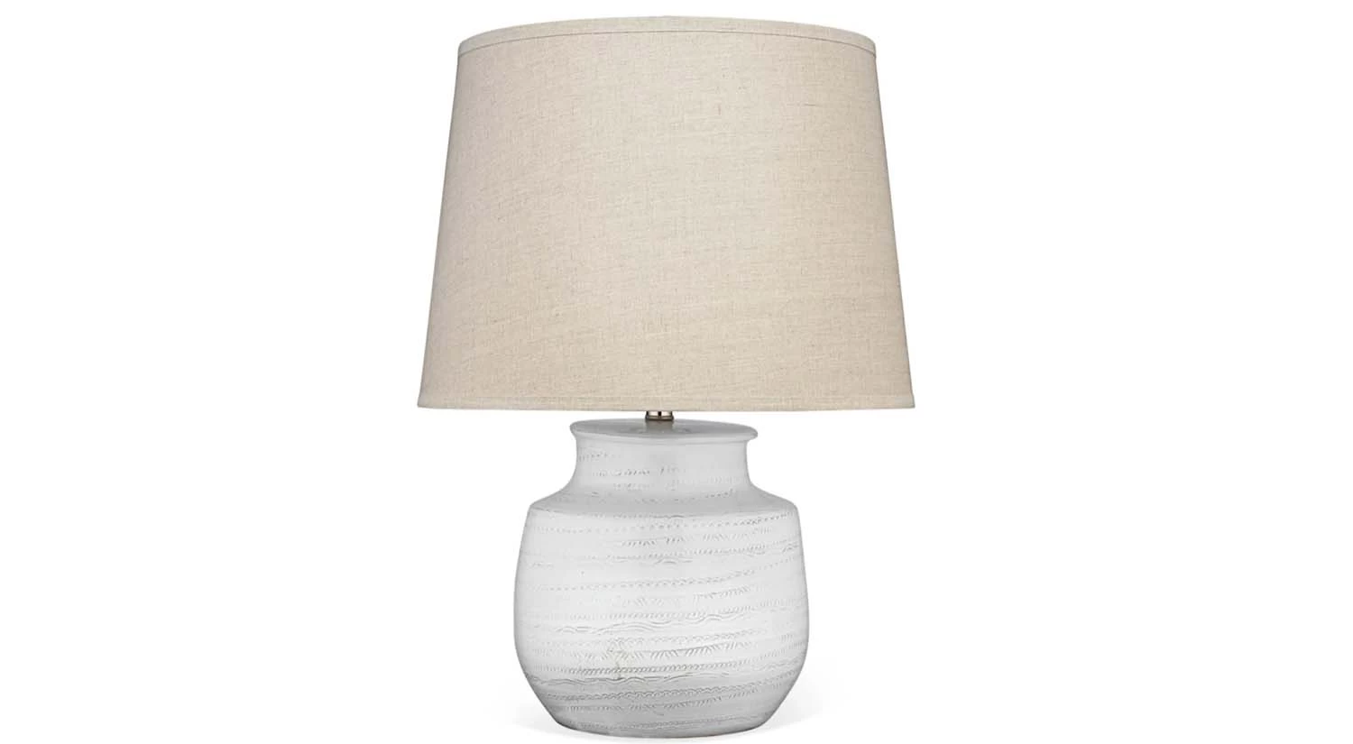 The Wide Trace Table Lamp sticks to a neutral color scheme so that it blends seamlessly with existing decor. It’s decorated with subtle details for a bit of texture, taking on a stylish yet elegant look.